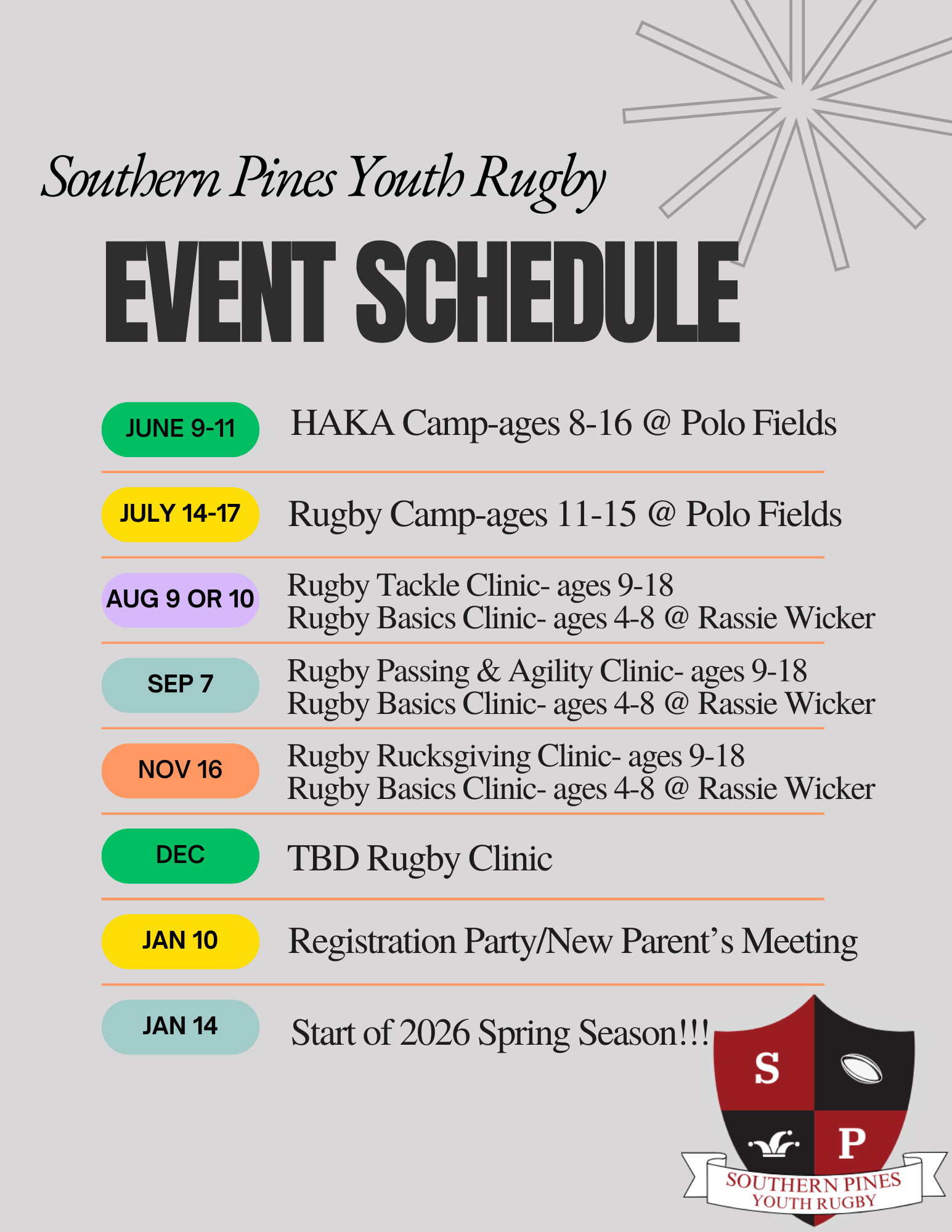 The Southern Pines Youth Rugby Club is a registered 501 (c) (3) nonprofit organization that welcomes boys and girls ages 4–18, from beginners to experienced athletes. We celebrate all athletic backgrounds and are committed to building an inclusive, affordable rugby community where every player can grow, belong, and thrive.